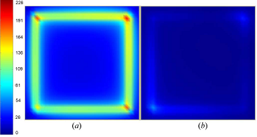 Fig. 3. Electric field distribution on the microstrip patch antenna. (a) Antenna is
